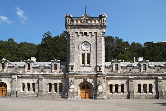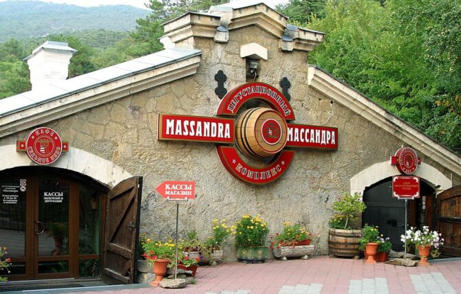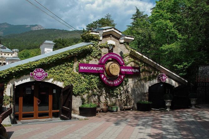 Примерно один километр (по прямой) отделяет Массандровский дворец от знаменитого предприятия по производству вина. Крымская земля идеально подходит для выращивания винограда определенных сортов. Идея развития производства вина приходила ко многим состоятельным жителям полуострова.
