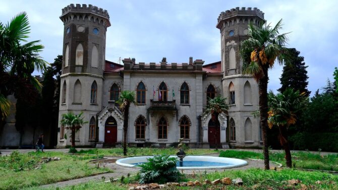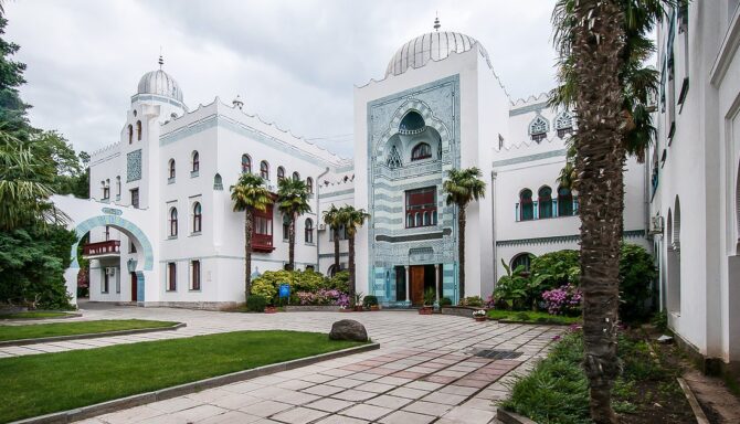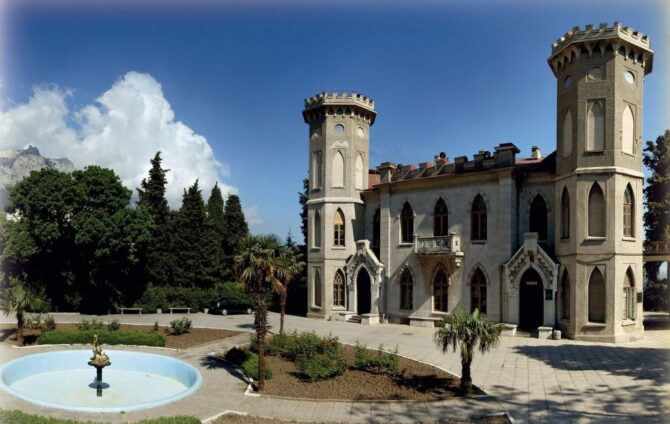 С 1922 г. в здании дворца размещается оздоровительный центр. Гости Большой Ялты приезжают на территорию санатория, чтобы осмотреть фасад старинного сооружения. Дворец представляет собой серое двухэтажное здание, возведенное из известняка. Готический стиль сооружения проявляется в нескольких хорошо различимых элементах: