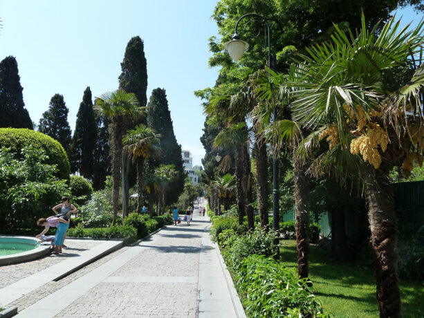 В начале 1920-х гг. набережная получила имя В. Ленина. В 1961 г. она была расширена и преобразована в двухступенчатую. Набережная стала похожа на палубу круизного лайнера. Сходство особенно заметно с моря, когда вечерами включаются фонари. На живописной набережной, мастерски облицованной плитками из светло-серого порфирита и красного гранита, расположены десятки объектов, интересных для гостей курорта: