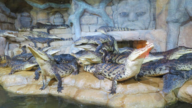 Крокодиляриум принимает посетителей ежедневно с мая по сентябрь включительно с 10 утра до 10 вечера. В остальные месяцы двери заведения закрываются на два часа раньше. В летний период кассы работают до 21:30, в зимний – до 19:00. Стоимость взрослого билета – 1 тыс. р. Для юных гостей (3–13 лет) – 700 р.