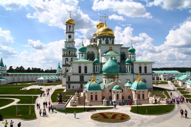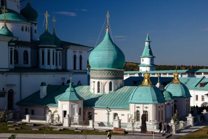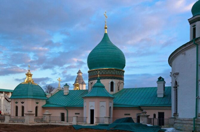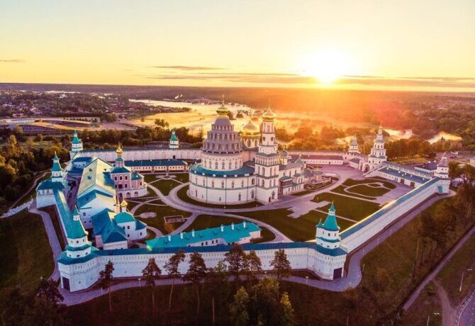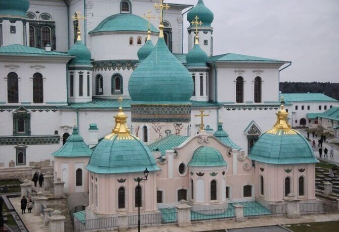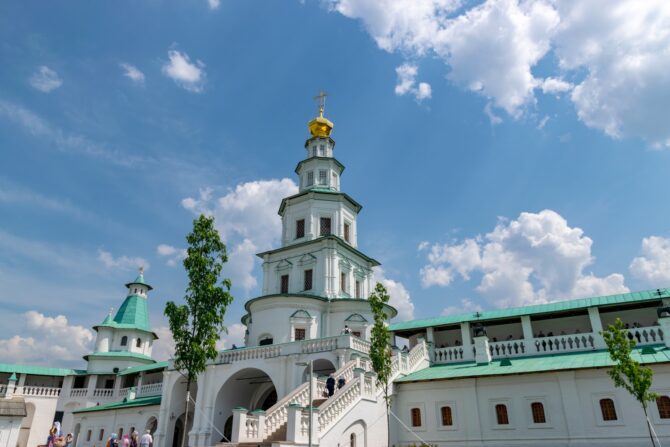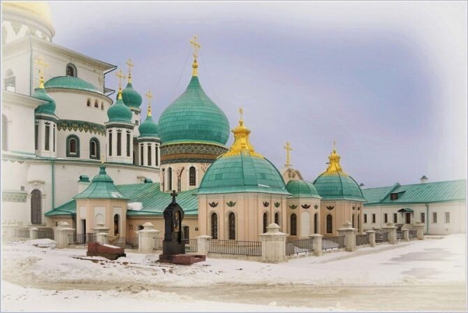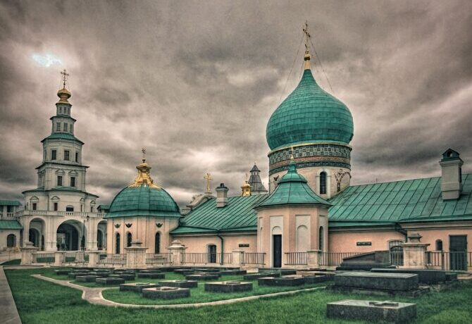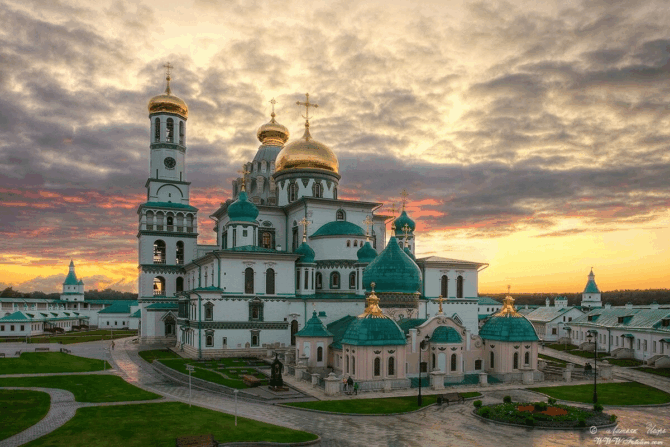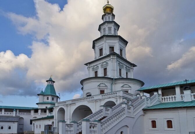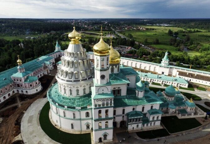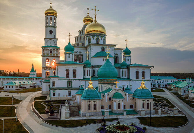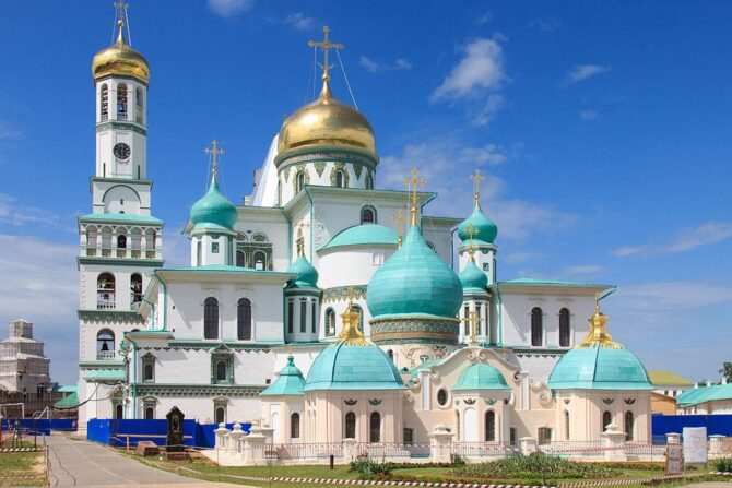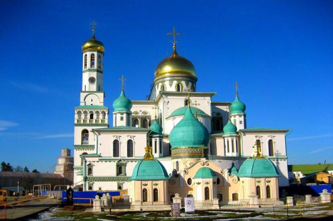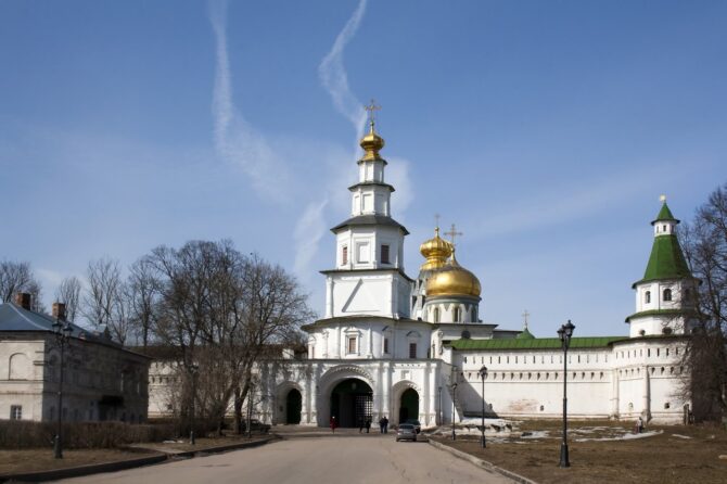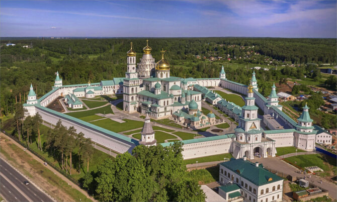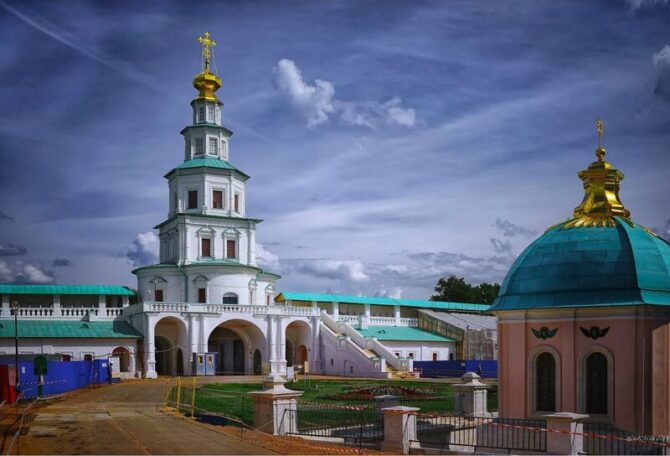 Ансамбль монастырских строений с собором Воскресения Христова – один из самых больших и красивых памятников церковной архитектуры и искусства 17 века. Построен монастырь по личному настоянию и участию патриарха Никона, который известен масштабными преобразованиями и расколом в Русской Православной церкви, послужившим началом кровавого преследования старообрядцев. Центральный собор внешним видом повторяет размеры и архитектуру храма гроба Господня в Иерусалиме, внутри также имеет копию Кувуклии, Голгофы и Камня помазания.