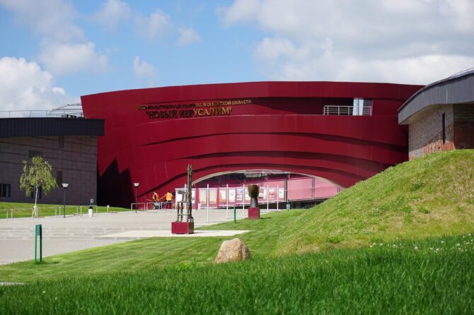 Всего несколько сот метров отделяют монастырь от нового здания музея. Построенное из стекла и бетона, оно вмещает большой концертный зал и около 10000 м2 выставочных площадей. Особый интерес вызывают передвижные выставки произведений великих классиков, которые регулярно приезжают в это место порадовать ценителей: картины голландца Брейгеля младшего, авангардиста Марка Шагала, гравюры Альбрехта Дюрера, работы мастера морских пейзажей Айвазовского, творения мастерских Карла Фаберже и т.д. Постоянная экспозиция музейного комплекса посвящена Новоиерусалимскому монастырю и личности патриарха Никона. Кроме этого, основная часть выставочного фонда состоит из раритетов русского искусства 16-20 веков: живопись, мебель, иконы и различные предметы. Драгоценности и ценные вещи вынесены в отдельный зал, который называется «Особая кладовая». Другое направление деятельности музейного комплекса – это концертная площадка, где регулярно выступают лучшие оркестры страны, маэстро фортепианной музыки и оперные певцы. Учитывая масштаб и ценность экспозиции, среднее время посещения музея составляет не менее 2-3 часов. Дети до 7 лет проходят бесплатно, для взрослых посещение основной выставки составит 150р.