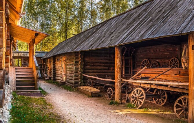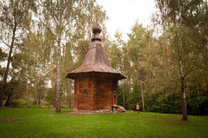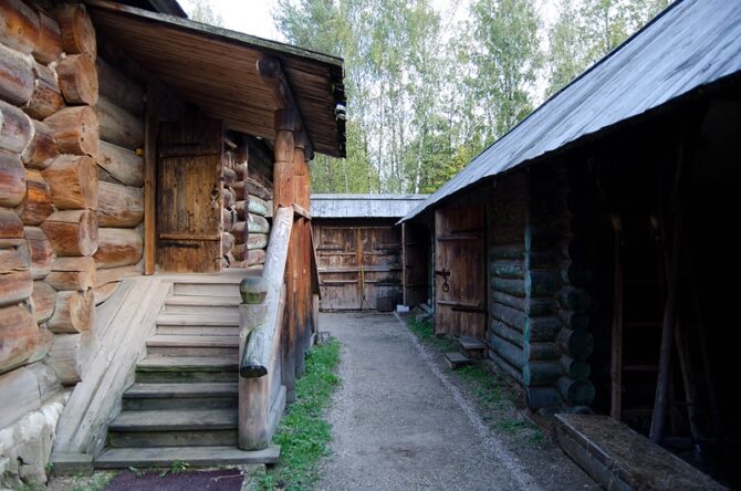Если пройти вдоль монастырских стен по деревянному настилу, то через Гефсиманский сад можно угодить в «музей деревянного зодчества». Фактически это комплекс из нескольких построек, сохранившихся ещё с царских времён. Особо смотреть здесь нечего, кроме как пофантазировать на тему трудностей крестьянского быта наших предков.