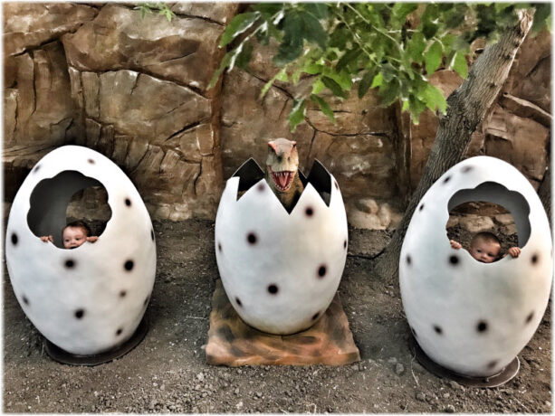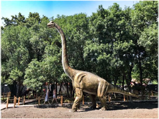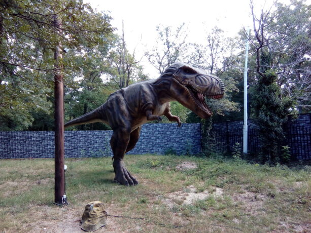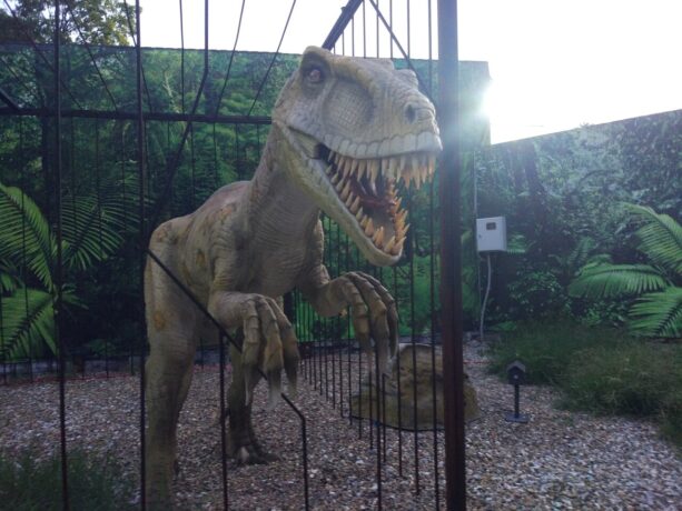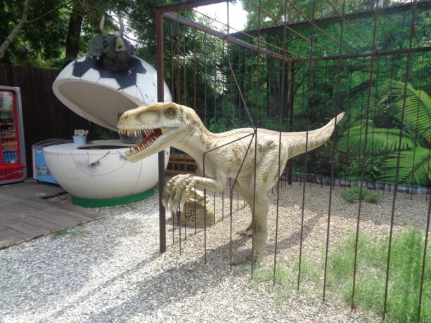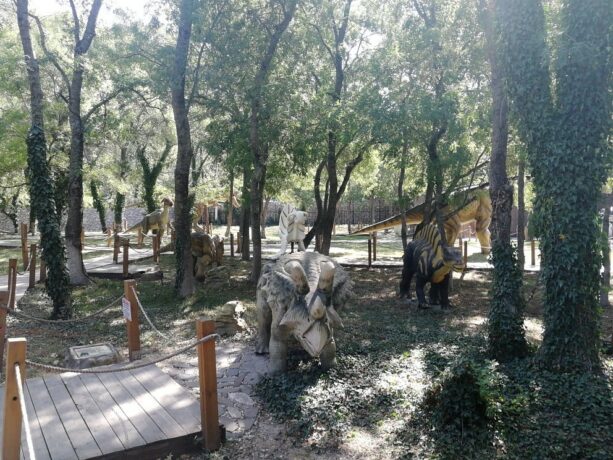 Рядом со Старым парком расположен Динопарк. Это выставка роботизированных фигур динозавров и других вымерших рептилий. Всего представлено 12 экспонатов, выполненных из силикона, умеющих рычать и двигать лапами. Звуковые эффекты и пластичность фигур погружает посетителей в атмосферу Юрского периода. Фотосъемка разрешена, поэтому с каждым из гигантов (фигуры выполнены в натуральную величину) можно сделать снимок на память. Авторы творчески подошли к созданию экспозиции. Некоторые экспонаты вызывают умиление и улыбку. Например, грозный овираптор держит в лапах яйцо и проявляет о нем заботу. Композиция рядом с фигурой динозавра показывает момент появления малышей на свет из гигантских яиц. Рядом расположены еще два пустых яйца, в которых могут поместиться дети. Фотографии «проклюнувшихся человеческих детенышей» станут украшением семейного альбома и странички соцсетей.