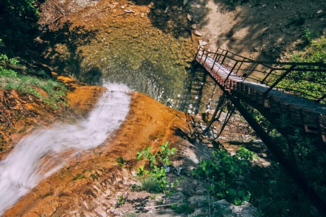 После Шнурка благоустроенная тропа приведет еще к двум водным исполинам: 6-метровому Гроту и 20-метровой Пасти Дьявола. Остальные 4 водопада находятся в труднодоступных местах, до которых под силу дойти физически подготовленным людям.