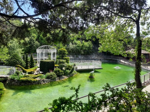 Семейные традиции соблюдают не только отели и развлекательные учреждения. «Кастальская купель» — яркий пример умиротворенного отдыха на лоне природы. Здесь разбиты аллеи с установленными скамейками, есть пруд, в котором обитают несколько видов рыб, в том числе осетровые и форель. Гордостью парка является ресторан с летними беседками, установленными на берегу озерца.