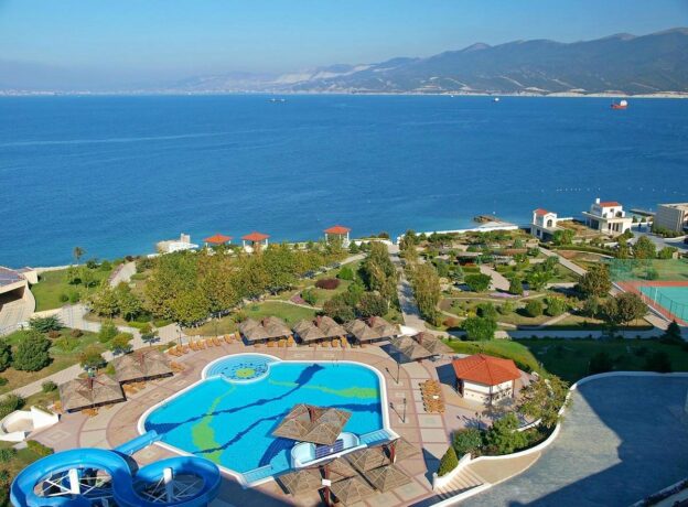 В шаговой доступности от Старого и Дино парков расположены отели и санатории. Можно поселиться в курортном комплексе «Надежда», ведь на его территории находится один из самых уютных аквапарков Кабардинки. В распоряжении гостей – просторный плавательный бассейн, разделенный на несколько купальных зон; высокие водные горки, в том числе спуск красного уровня «Камикадзе»; турбо с крутыми виражами; оборудованный лежаками и теневыми зонтиками Лаундж; детские водные аттракционы. Каждый день для маленьких гостей комплекса проводятся развлекательные программы с участием аниматоров. Подростковый клуб устраивает разнообразные квесты и мастер-классы.