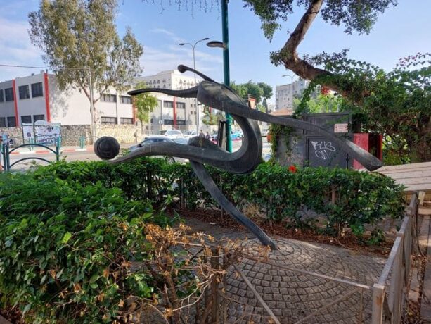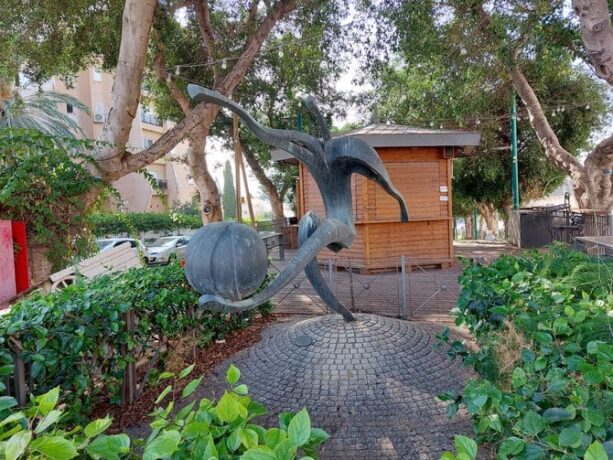 Самое начало нашего маршрута лежит через необычную скульптуру человека, играющего в самую популярную игру мира — футбол. Неподалеку от скульптуры вы можете обратить внимание на киоск не очень характерный для сегодняшнего времени. Стоит он здеь не просто так. Этот киоск воссоздали по мотивам старинного, который стоял в Хадере в первой половине 20-го века. Оригинальный киоск стоял на проспекте Герцля. В этом киоске продавали мороженое, газированные напитки, бутерброды, конфеты, кренделя и даже канц. товары. Идея создания киоска принадлежит Давиду Шерашову. Со своим предложением он обратился в городской совет в 1926 году. По его письму и был заключен договор на аренду киоска. Этот киоск так важен для города поскольку он символизирует становление и развитие малого предпринимательства в городе Хадера. Городу очень важно сохранять память о людях, которые приложили усилия к его развитию.