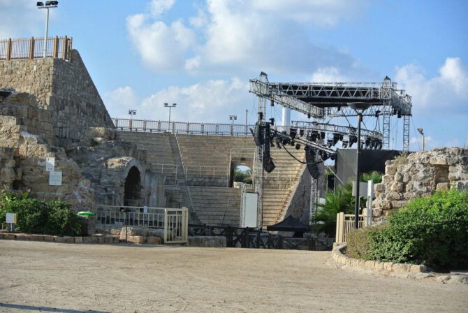 1. Амфитеатр был построен Иродом Великим в 22 г. до н. э. как часть его дворцового комплекса. Он использовался для общественных мероприятий и зрелищ, таких как игры гладиаторов, охота на животных и имитация морских сражений. Сегодня он используется для проведения концертов и других мероприятий в летний сезон.