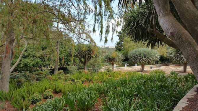 Парк имеет площадь около 1 га и разделен на 4 основные части: Ароматный сад, Пальмовый сад, Розовый сад и Ирисовый сад.