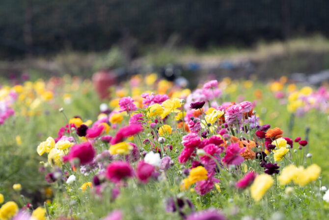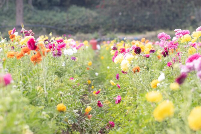 Помимо клубники на полях растут различные цветы и подсолнухи, что добавит развлечений для детей.
