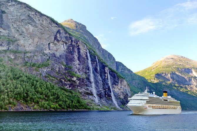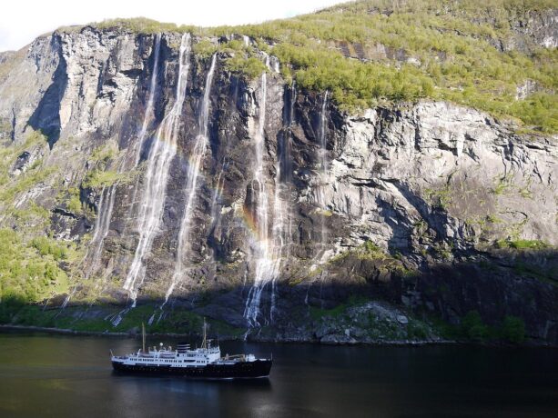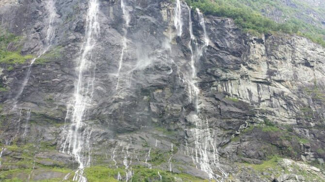 Во время прогулки на лодке по Гейрангер-фьорду вы сможете полюбоваться водопадом Семь сестер, названным так из-за наличия других соседних водопадов. А также рядом связанных с ним древних легенд: истории о женихе, фате невесты, семи отвергнутых друзьях. Сказки, обретающие форму в водах водопада, полных волшебства и пара, брызг и игры света. Однако прогулки по его скалам могут быть захватывающими, но также и опасными: тем, кто страдает от головокружения, лучше держаться подальше. Водопад имеет высоту свободного падения около 250 метров, что также является секретом его величия. Наблюдение за водопадом «Семь сестер» даже издалека в любом случае является чем-то особенным.
