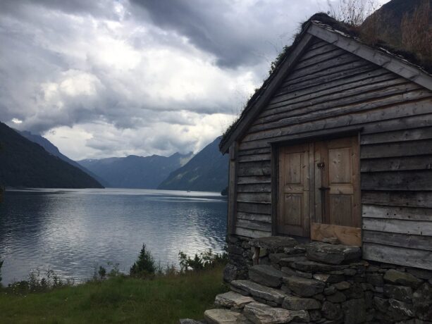 Старый фермерский дом на берегу фьорда. Лунданезет — это специальный наблюдательный пункт на Гейрангере и Хеллесиите. Что-то необыкновенное в ветре и ярком свете этого эксклюзивного района Норвегии. Часто это место является отправной точкой для ознакомительных туров в контексте фьорда. Дополнительная жемчужина, чтобы добавить к празднику. Руины фермы заставляют вас представить далекие жизни, когда природа кажется такой впечатляющей.