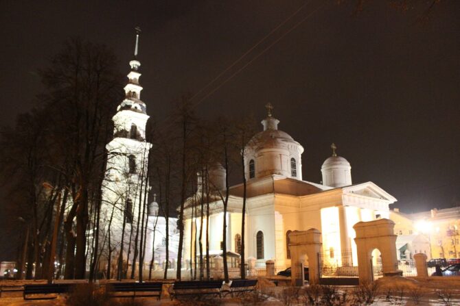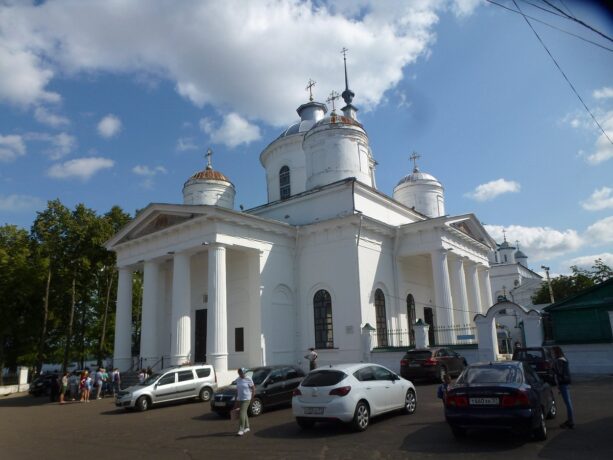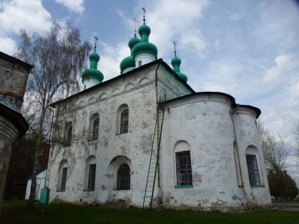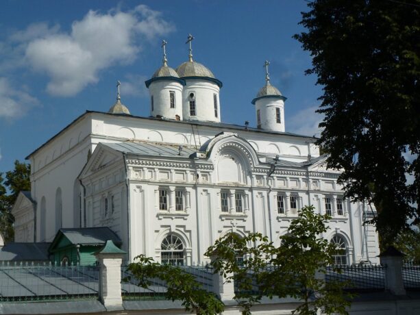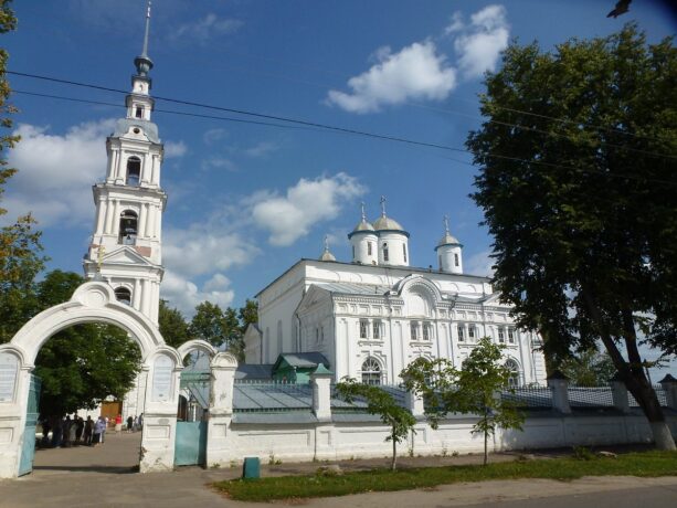 Именно здесь, на берегу Волги, возвышается белокаменный кафедральный собор Кинешемской епархии русской православной церкви. Он является объектом культурного наследия. В архитектурный ансамбль входят два храма – Успенский и Троицкий, колокольня, дом священника. Комплекс прекрасно просматривается со всех районов города, поэтому логично начать знакомство с историей Кинешмы именно с него.
