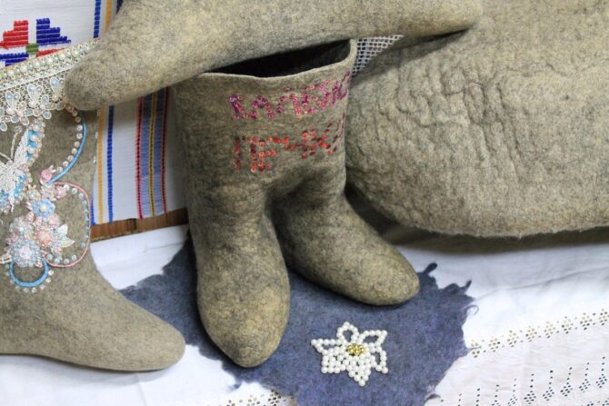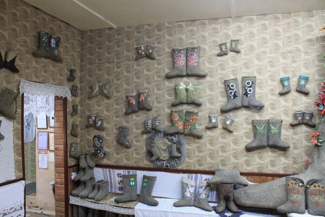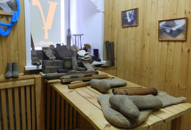 Авторами экспозиции войлочных изделий стала семья Соколовых. Глава семейства Валерий и его жена Ирина более 20 лет занимаются валянием валенок. Пока их дочери Светлана и Люба были маленькими, они занимались изготовлением простых традиционных моделей. Затем промысел перерос в создание уникальной русской обуви с оригинальным оформлением. Со временем накопилось огромное количество интересных изделий. Городские власти пошли на встречу самобытным кустарям и помогли им организовать музей. Сегодня в фонде насчитывается более 500 экспонатов. Среди них: валенки, старинные шерстобойные машины, различные изделия из войлока и шерсти.