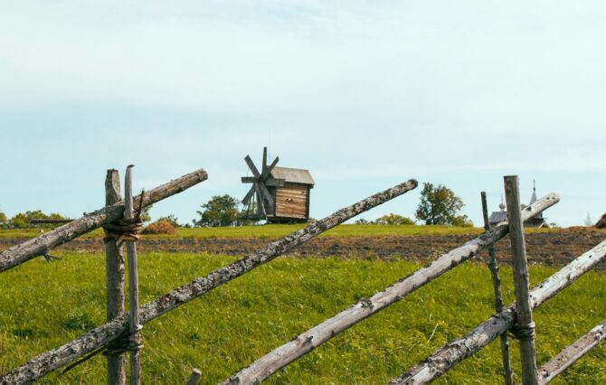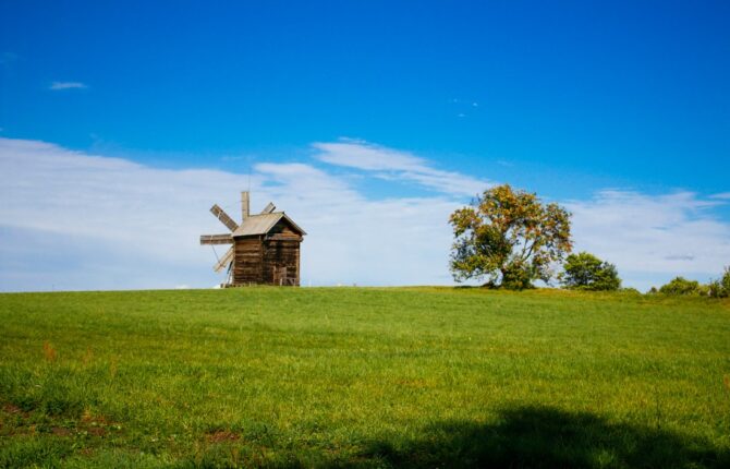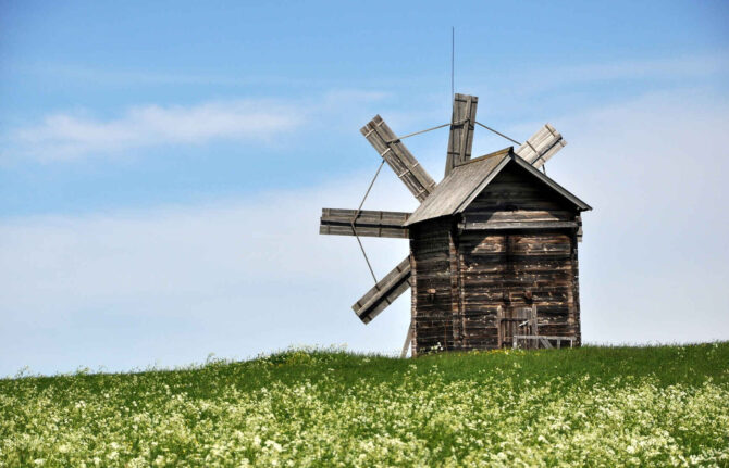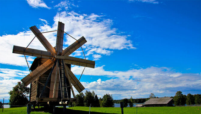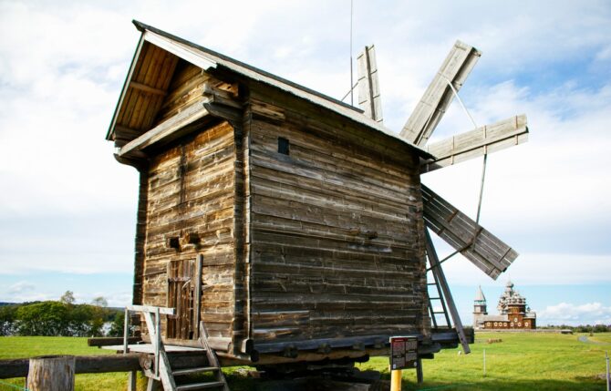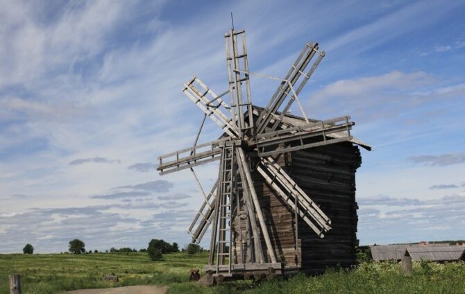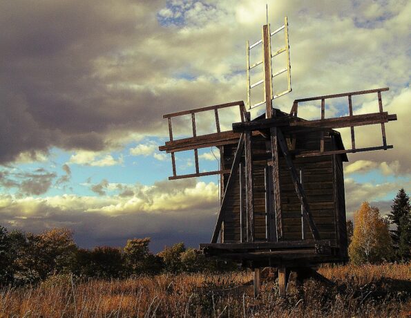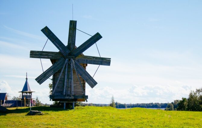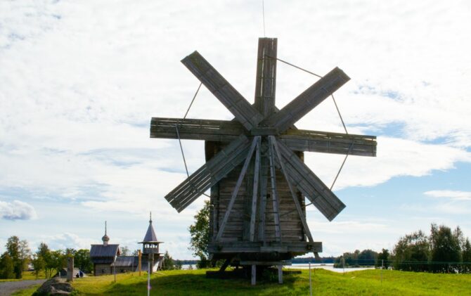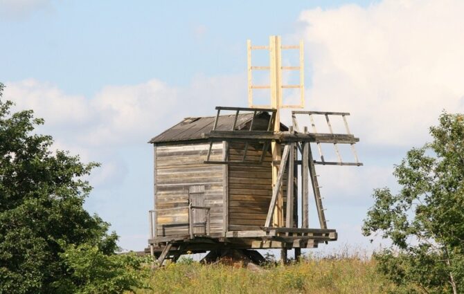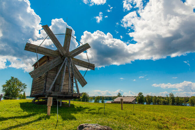 - ветряную мельницу, построенную финским мастером; высота конструкции — 5 м; мельница, опирающаяся на вертикальный столб, представляет собой квадратное сооружение с четырьмя крыльями.