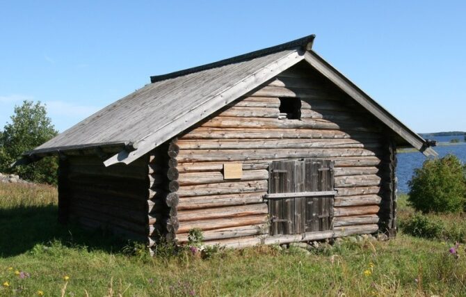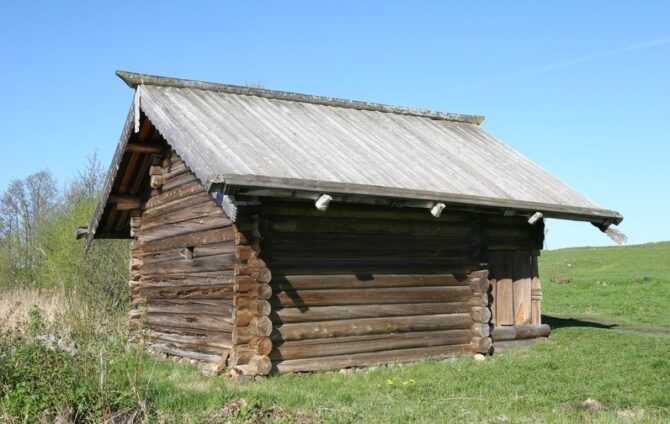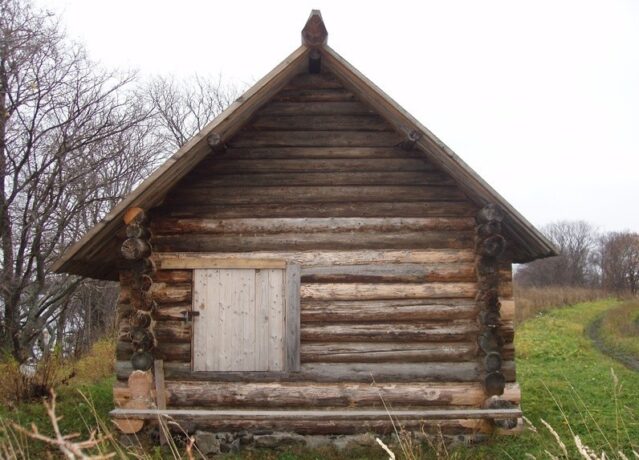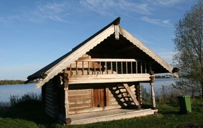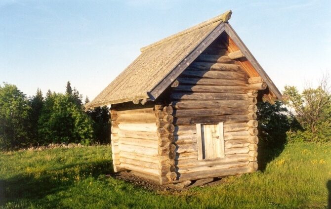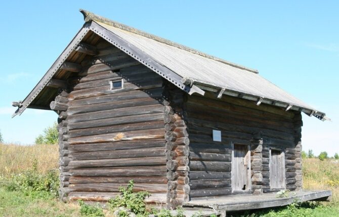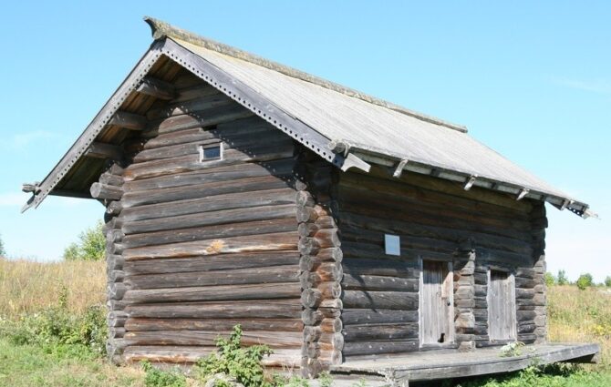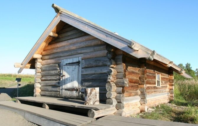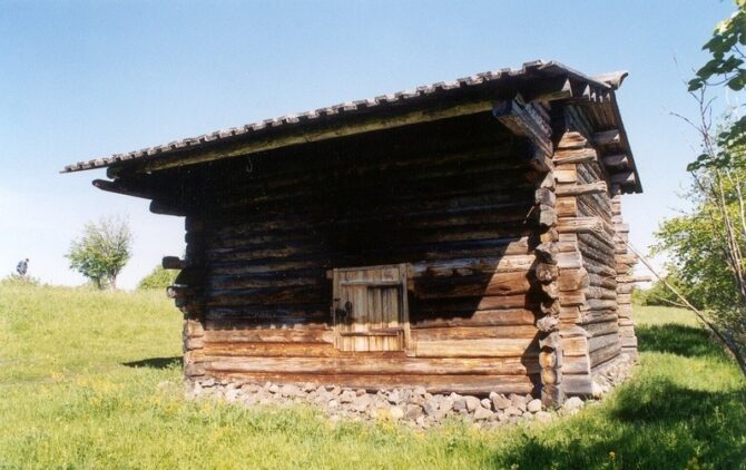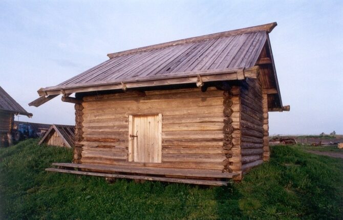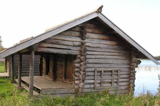 - баня из Каскесручья, представляющая собой двухкамерный сруб с отверстием-дымоходом на крыше и одним окном.