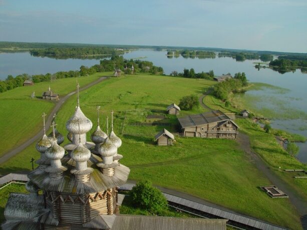 На расстоянии 354 км к северо-востоку от Санкт-Петербурга расположены Кижи — всемирно известный остров. Славу этому живописному месту, удаленному от промышленных центров, принесли уникальные деревянные постройки. Достопримечательности Кижей — этнографического и историко-архитектурного музея (1966) — интересны как для российских, так и зарубежных граждан, увлекающихся историей зодчества и быта народов Русского Севера.