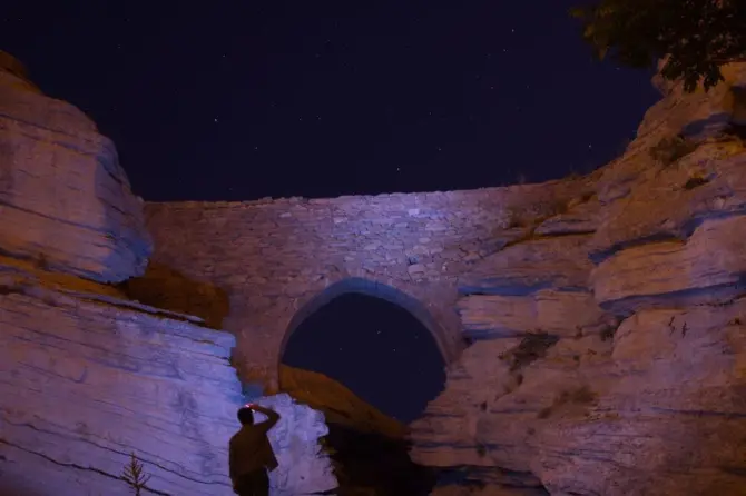 Место очень красивое и живописное. Хорошей дороги к мосту нет, чтобы добраться до него, нужно идти по сухому ручью. Идти наверх как-то опасно, ступенек нет, приходится карабкаться по боковым скалам. Будьте готовы иметь хорошую обувь для скалолазания, когда пойдете туда.
