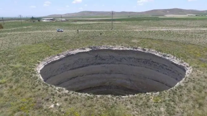 Карстовые воронки образуются в результате растворения породы, а также обрушения сводов карстовых ям. Глубина воронок может варьироваться от нескольких метров до нескольких сотен метров. Некоторые из них имеют форму цилиндра и их дно видно, а у некоторых невидимое дно открывается в пещеру и уходит очень глубоко. Некоторые из воронок содержат воду на дне, а другие содержат углекислый газ и сернистые газы. Некоторые из воронок в Карапынаре: воронка на плато Кючук-Сексле, воронка на плато Колча, воронка Акёрен, воронка Путур, полуворонка, воронка Чифтелер, Акобрук, воронка Дикмен, воронка Буюк Фиданджи, воронка Хамам. Стоит отметить, что таких озер-воронок множество во всем регионе, мы же даем координаты одного озера из множества.