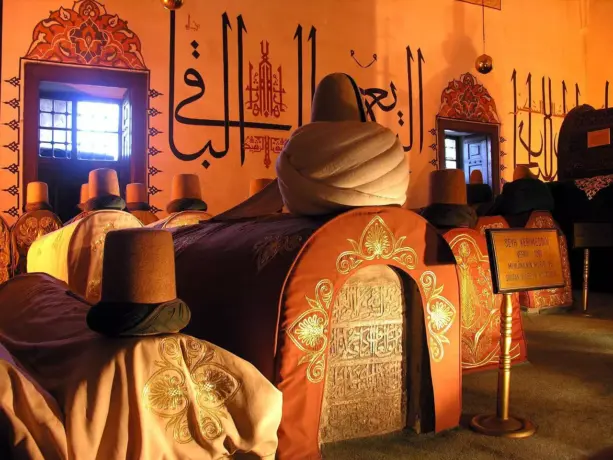 Это заведение связано с выдающимся исламским деятелем, проповедником, поэтом, философом XIII ст. В свое время Мевлана основал суфийский орден дервишей Мевлеви.