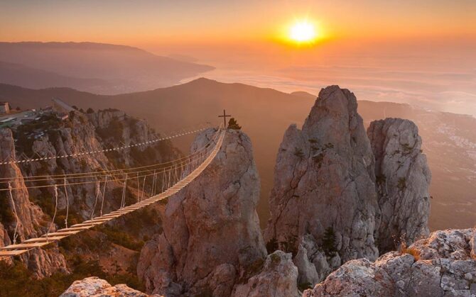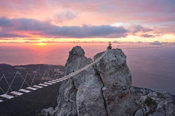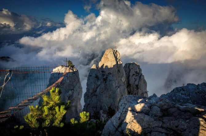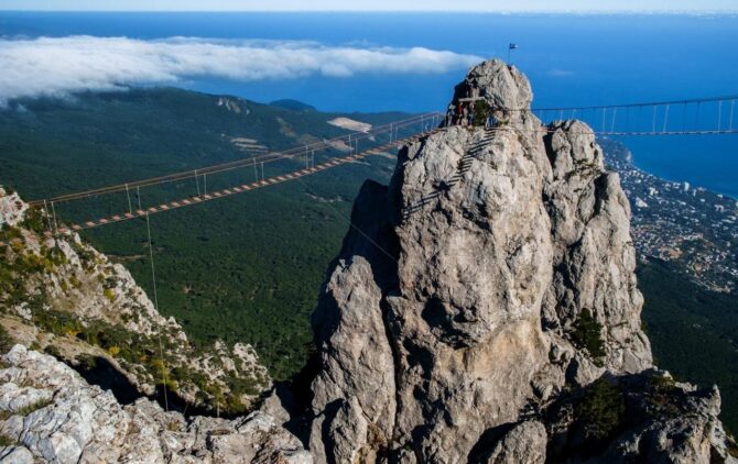 Над Большой Ялтой возвышается самая высокая вершина Крымских гор – Ай-Петри. Она является одним из символов Южного побережья Крыма. В 1988 году была торжественно открыта пассажирская канатная дорога. Она соединила поселок Мисхор с живописным плато Ай-Петри. Ее строили долго, начиная с 1967 года. Зато возвели, что называется, на века. За годы эксплуатации она подвела лишь один раз в 2013 году, когда 75 пассажиров застряли на высоте 50 и 130 метров. Все были благополучно эвакуированы.