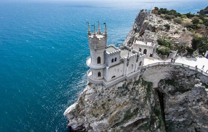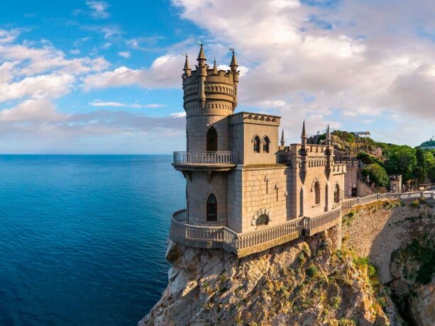 Неофициальным символом Большой Ялты является готический замок Ласточкино гнездо. Он построен на отвесной скале мыса Ай-Тодо в Гаспре. У памятника культуры богатая история. Свой современный облик он принял только в 1912 году. За несколько веков до этого здесь стояла греческая церковь. Ее остатки были обнаружены в первой половине 19-го века. Тогда еще были заметны места, предназначенные для алтаря и престола, сохранились кирпичи с печатями. Но военные решили построить здесь маяк. Он появился в 1835 году по приказу адмирала Лазарева. Строение заняло часть античных руин, а оставшаяся территория перешла в собственность отставного генерала русско-турецкой войны.