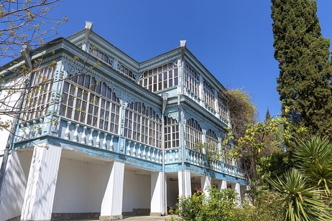 Далее следует посетить парковый ансамбль Мурад-Авур. В начале 20-го века его основал русский генерал-майор, командир императорской лейб-гвардии в отставке Николай Николаевич Комстадиус. На купленном участке он решил построить необычное по архитектуре здание, в котором сочетались тюркский колорит и европейская сдержанность. Владелец привлек к работе Николая Краснова, который создал уникальный проект из 17 комнат. Семья незамедлительно переехала в новое жилье, а сам Комстадиус занялся разведением виноградников и изготовлением вина. До революции он не дожил всего несколько дней, поэтому свидетелями национализации дома и хозяйства стали члены его семьи.