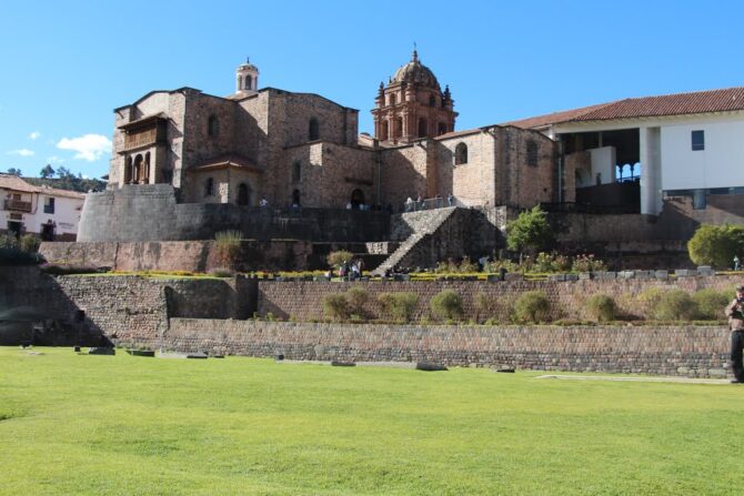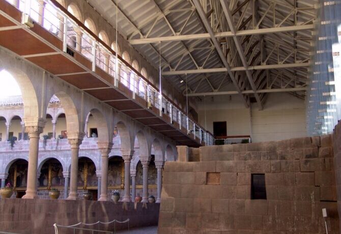 Монастырь Санто-Доминго построен на развалинах Кориканчи – древнего Храма Солнца, самой главной святыни инков. В своё время стены Кориканчи были покрыты золотом, а внутренний двор был полон тяжелых золотых статуй. Храм был разрушен конкистадорами, все драгоценные металлы вывезены в Испанию, а на его месте построили христианский монастырь. Но нетронутый фундамент Кориканчи можно увидеть и сегодня, туристов поражают его идеально ровные гладкие гранитные блоки. Они сделаны настолько качественно, что больше напоминают продукт современной промышленности, чем вручную обработанный камень, которому не меньше 900 лет.