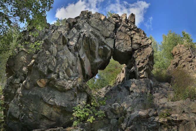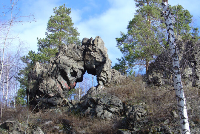 Любителям природы стоит отправиться в поселок Черноисточинск. Их ждет увлекательная прогулка по девственному лесу. К ней необходимо заранее подготовиться – на всякий случай взять с собой нескользкую обувь, дождевик, средства от комаров/клещей. Гора находится возле Черноисточинского озера. Отличительной характеристикой останца является дыра неправильной формы, которую в 1770 году исследователь Паллас охарактеризовал, как «проломанную большую дверь». Но свое название она получила значительно раньше. В годы строительства первых демидовских заводов в Нижнем Тагиле здесь заготавливали дрова для нужд близлежащих предприятий. Гора изначально называлась Дроватиком, и только потом добавилась буква «ы». За свою уникальную форму останец признан геоморфологическим памятником природы. Охраняемая территория вокруг него достигает 100 га.