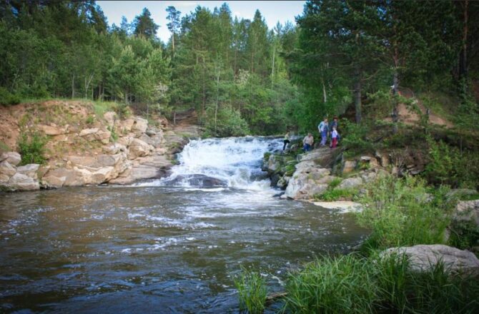 Когда в конце 1970-х годов строился Южаковский пруд, на реке Амбарка образовался небольшой, но очень живописный водопад. Сюда любят приезжать на отдых, рыбалку, а некоторые стремятся найти уральские самоцветы. Амбарка знаменита своими самоцветными копями. Говорят, что один из самых первых старателей из семьи Южаковых сумел подобрать здесь аметисты для колье английской принцессы, которое подарил ей на совершеннолетие российский самодержец. Добираться до водопада лучше всего после посещения деревни Мурзинка. На дороге установлен указатель, куда ехать и какое расстояние придется преодолеть.