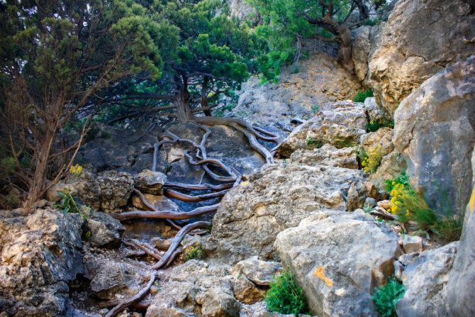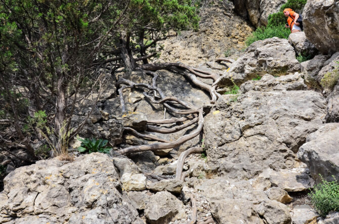 - Обезьянья лестница, представляющая собой переплетенные можжевеловые корни; второе название – лестница Тарзана;