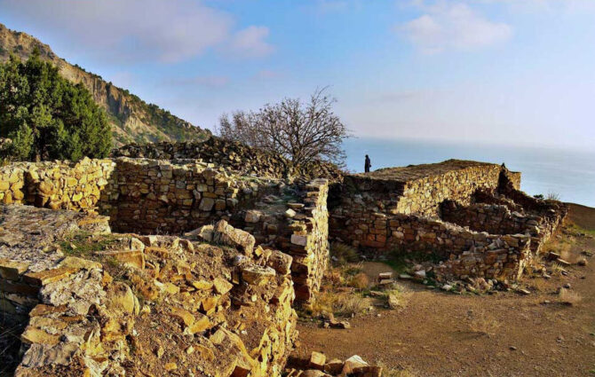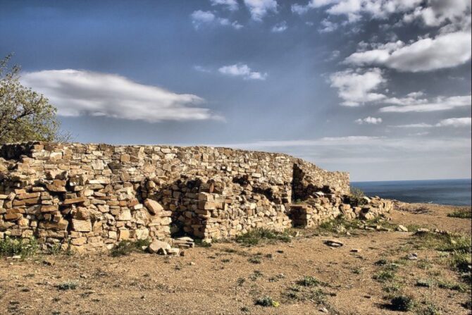 Всего лишь 700 м (по прямой) отделяют Караул-Оба от древнего фортификационного сооружения. Кутлак – так называется крепость, возведенная в I столетии до н. э. Мощное сооружение было построено по инициативе Асандра – боспорского царя. Цитадель предназначалась для защиты от нападений тавров и других врагов.