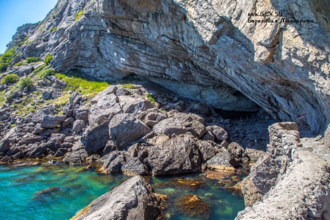 Пройдя примерно 480 м по тропе Голицына, туристы оказываются рядом с естественным гротом, образовавшимся благодаря длительному процессу, когда морские волны выбивали углубление в прибрежных скалах. Природный объект удивляет туристов размерами: ширина – 17 м, высота – от 25 до 30 м.