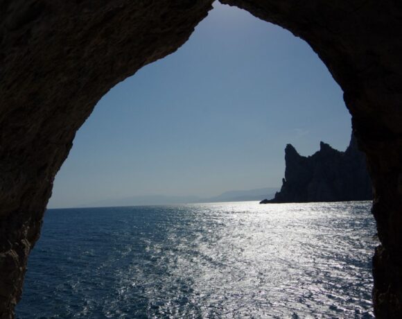 Тектонические процессы, происходившие в далеком прошлом на полуострове, привели к образованию многих крымских природных объектов. Сквозной грот – карстовая пещера, пронизывающая мыс Капчик, – один из них. В образовании этого природного объекта, соединяющего две бухты – Голубую и Синюю, – также важную роль сыграли подземные воды.