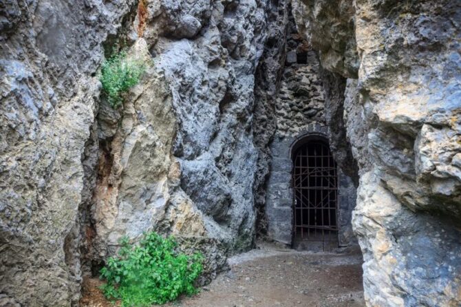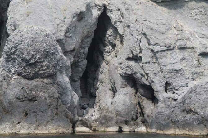 Внутри грота живут летучие мыши. Это одна из причин, по которой не рекомендуется заходить внутрь карстовой пещеры. Гораздо лучше спуститься к ней по восточной стороне мыса и сделать несколько снимков внешнего вида. Западный вход в пещеру закрыт прочной решеткой. Солнечный летний день – наиболее подходящее время для знакомства со Сквозным гротом.