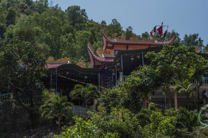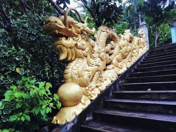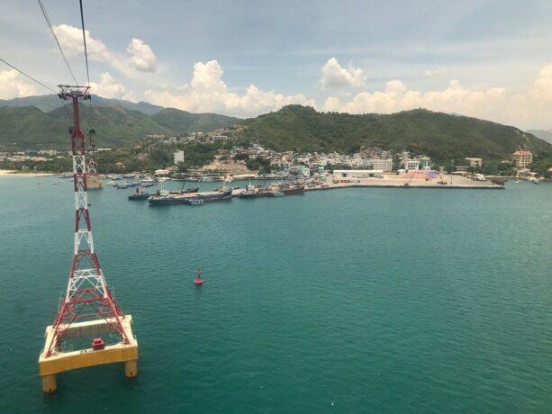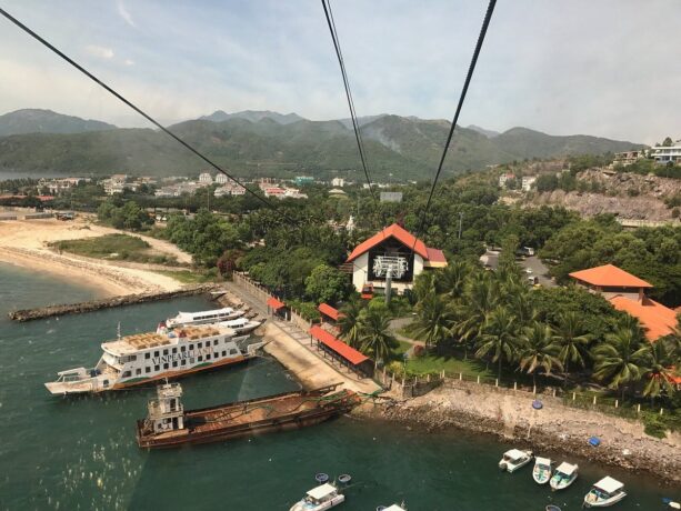 Металлические опоры канатной дороги напоминают копии парижской Эйфелевой башни, уменьшенной в размерах. Вечерами и ночами конструкция ярко подсвечивается. Стоимость поездки – 7 тыс. (здесь и далее по тексту цены указываются во вьетнамских донгах). Канатная дорога работает ежедневно с 8:30 утра до 10 вечера.