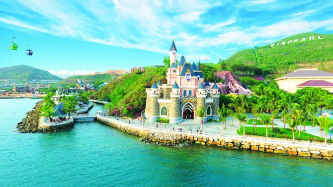 Туристы добираются до тематического парка с помощью канатной дороги. Надпись Vinpearl, размещенная на склоне холма, расположенного на острове, хорошо видна из разных районов города и служит ориентиром для путешественников. Кроме детского питания, не разрешается приносить какую-либо другую еду и напитки на территорию парка.