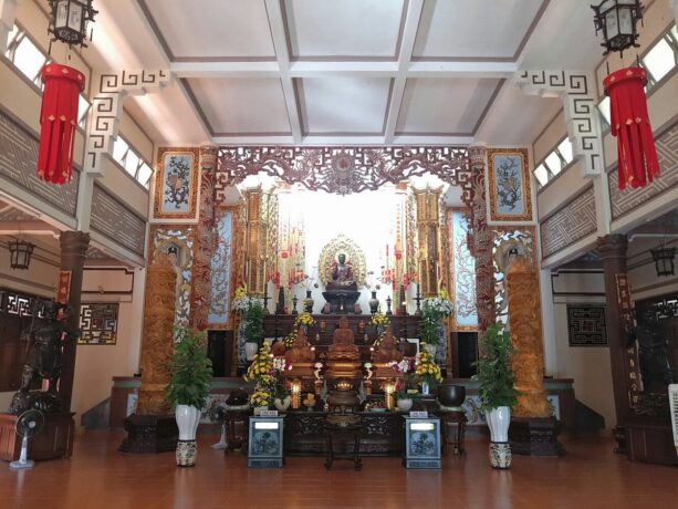 - внутри каждой стены-лепестка оборудованы высокие окна, украшенные вьетнамскими флагами.