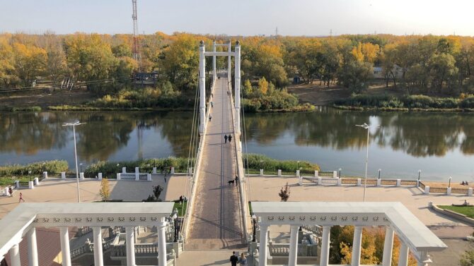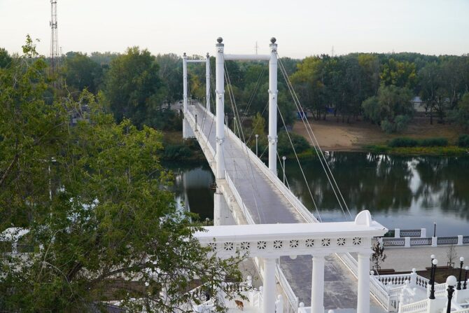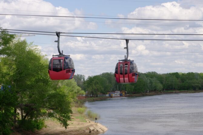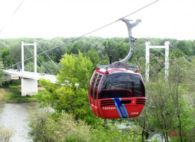 Рядом с мостом расположена канатная дорога, по которой можно пересечь реку, если захочется осмотреть мост и окрестности с высоты. Курсируют всего две кабинки, названные соответственно «Европа/Азия». Время в пути составляет 2 минуты. Канатка появилась в 2006 году и сразу стала еще одной достопримечательностью города. В [y] году были обновлены кабинки и проведены технические работы. Из-за нехватки финансирования фуникулер часто закрывается, чем вызывает неудовольствие со стороны горожан и гостей Оренбурга. Оплата за билеты не покрывает расходы на содержание дороги. Изначально она была построена на деньги местных предпринимателей, но сейчас находится на городском балансе.