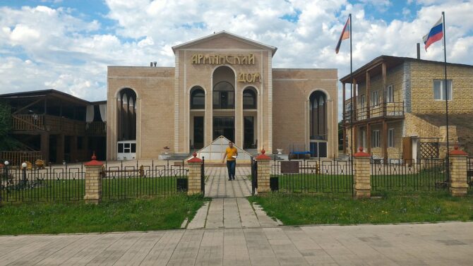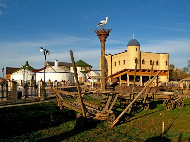 Сразу за сквером им. Юрия Гагарина построен культурный комплекс «Национальная деревня». Вход на территорию свободный, платить придется только за посещение отдельных экспозиций. По замыслу организаторов здесь объединены воедино музеи, развлекательная зона и природный парк отдыха. Этнический состав населения Оренбурга формировался много веков. Эта область по праву считается одной из самых многонациональных. Комплекс объединил культуру и быт разных народов. Он состоит из 10 подворий, в которых представлен национальный колорит русских украинских, мордовских, немецких, армянских, татарских, башкирских, чувашских и белорусских традиций. На каждом подворье работает музей, обязательно представлена народная кухня в национальном ресторане, к датам проводятся гуляния и обрядовые праздники. В центре деревни установлен фонтан «Дружба». Вечером территория освещена, поэтому гулять по ней можно в любое время суток.