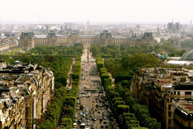 Елисейские поля – самая знаменитая улица в Париже, которая находится в 8-ом округе и тянется от Площади Шарля де Голля до Площади Согласия. Это самая большая улица французской столицы. Протяженность Елисейских полей – около 2 км, а ширина составляет 71 м.