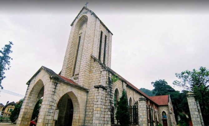 Приход в Сапе был основан в 1902 году священником из Парижского общества иностранных миссий. Церковь построили в 1926 году. На ее территории находятся: дом служителя церкви, конюшня, хоспис и трапезная для нищих. В деревне Фин основан монастырь, являющийся обителью монахинь цистерцианской реформы, которые сотрудничают с приходом. В 1950-х годах собор был закрыт. В начале в нем располагались склады, затем школа. Многие объекты на территории храма были разрушены и повреждены. В 1995 году местными властями было принято решение вернуть церковь верующим. С 1998 года здесь проводятся восстановительные работы. Настоятель вкладывает силы в возрождение христианских обычаев и традиций. Двери храма всегда открыты для ценителей европейской архитектуры и приверженцев католического вероисповедания.
