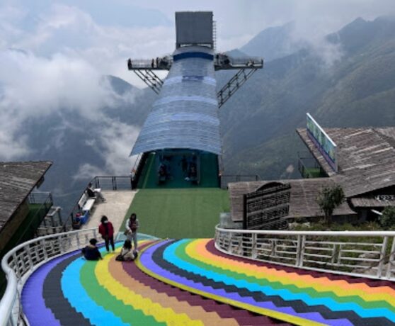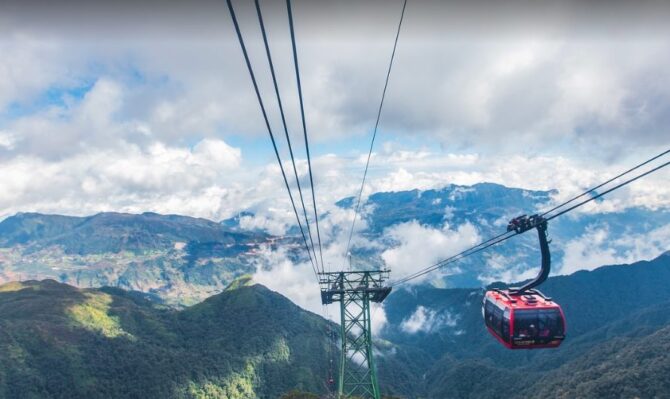 Возле храма останавливаются не только туристические автобусы. Здесь находится основная стоянка такси. Но до следующей достопримечательности – станции, ведущей к канатной дороге – можно дойти пешком. Подъемник на гору Фаншипан открылся в 2016 году. Это самая длинная канатка в мире. Ее протяженность составляет чуть более 6 км. Перепад высот – 1400 метров. В удобных и безопасных вагончиках можно подняться на вершину горы (3 140 м), где находится самая высокая смотровая площадка полуострова Индокитай. Если погода пасмурная, то лучше отложить поездку на другой день, иначе весь обзор будет закрыт облаками и туманной дымкой. Подъем длится 15 минут, но стоит недешево – 600 тысяч донгов. Стоимость билета до второй станции составляет 150 тысяч донгов.