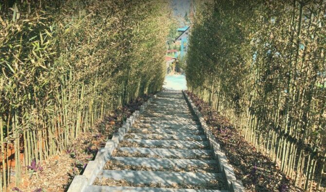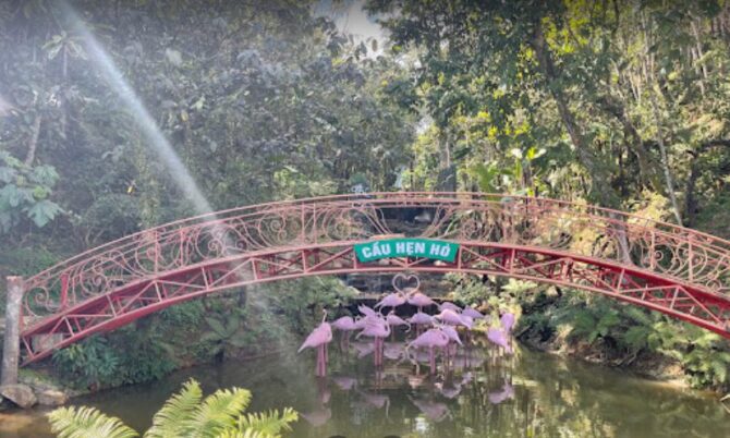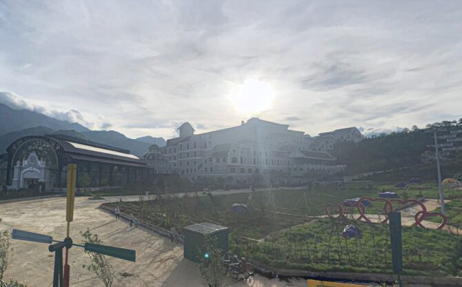 Центральная улица, украшенная клумбами и цветниками, ведет к самым интересным местам. Повсюду установлены статуи, арт-объекты, качели и скамейки. В центре фудкорта красуются башенные часы. Рядом находится цветочный туннель. На площади, выложенной плиткой построена пагода монастыря Bao An Zen. Она выполнена в архитектурном стиле, характерном для буддистских храмов Индокитая. В центре установлена статуя и небольшая ступа. Внутренние интерьеры поражают богатством и красотой. В отделке использованы царские бордовые цвета и позолота. Пагода прекрасно смотрится на фоне гор и современных парковых строений. Она располагает к сокровенным размышлениям. С ее территории открываются удивительные виды на рисовые плантации. Сверху они похожи на картины художников, писавших пасторальные сюжеты. После прогулки по парку нужно вернуться на станцию, чтобы продолжить «восхождение» на самую высокую гору Индокитая.