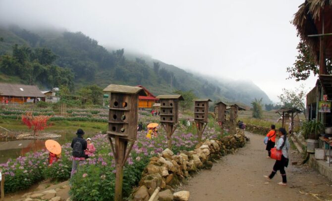 Для любопытных путешественников, желающих максимально испытать на себе условия жизни вьетнамских горцев, обустроен уникальный туристический объект – деревня Кэт-Кэт. Она находится в 3-х км от центра Сапы. Вход платный: взрослый билет стоит 2$, детский – 75 центов. На прогулку придется потратить несколько часов. Основное время займет осмотр самой деревни. Это вотчина народа, именуемого черными хмонгами. Когда-то, наравне с красными зао, они считались основным населением северных гор Вьетнама. Сегодня эти люди из прошлого продолжают соблюдать традиции своего народа, а заодно приобщают к ним заезжих туристов.