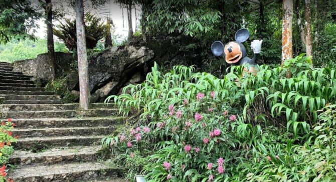 Во время прогулки по парку на склоне горы Хам Ронг туристы часто обращают внимание на камни необычной формы. Зачастую они приобретают оранжевую окраску, чем украшают и без того интересный ландшафтный дизайн. На одном из валунов размещена надпись: «Сад 12 зодиаков». Не стоит проходить мимо, а обязательно зайти на его территорию. Здесь размещены фигуры восточного гороскопа по годам. Каждая скульптура «вживлена» в окружающую природу. Например, Дракон живет на скале, которая омывается ручьем. Рядом с ним находится заросший прудик с мостиком для переправы на другой берег. Для оформления и благоустройства использованы только натуральные материалы. Даже желоба для стока воды и качели выполнены из бамбука.