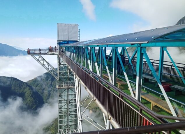 С моста открывается вид на перевал O Quy Ho и хребет Hoang Lien Son. Одновременно на мосту могут находиться до 3 тысяч человек. Так утверждают разработчики проекта. Владельцы в целях безопасности пускают по 500 человек. Каждому выдаются бахилы с антискользящей подошвой. Это необходимо для безопасности посетителей, особенно в дождливую погоду. Мост стал первым объектом, построенным в рамках нового туристического проекта Thac Trang. Работы над ним продолжаются и включают: высокогорный отель, зиплайн, панорамный бассейн. Сейчас можно остановиться в небольших деревянных бунгало с собственной террасой и мангалом. Если хочется каждое утро просыпаться в туманной дымке и встречать восход солнца вдали от шумного города, то это место станет лучшим для спокойного отдыха.
