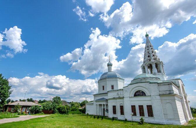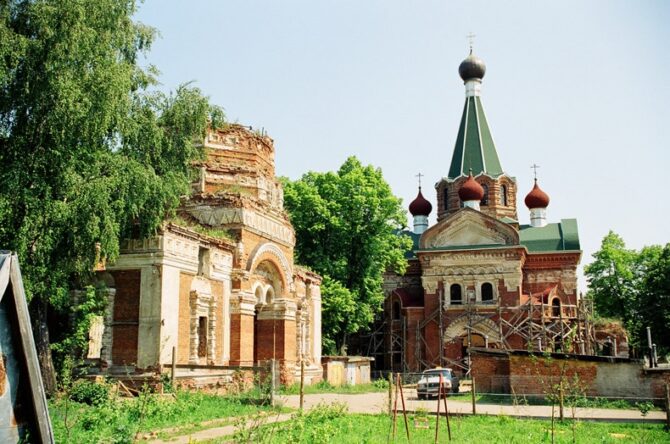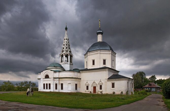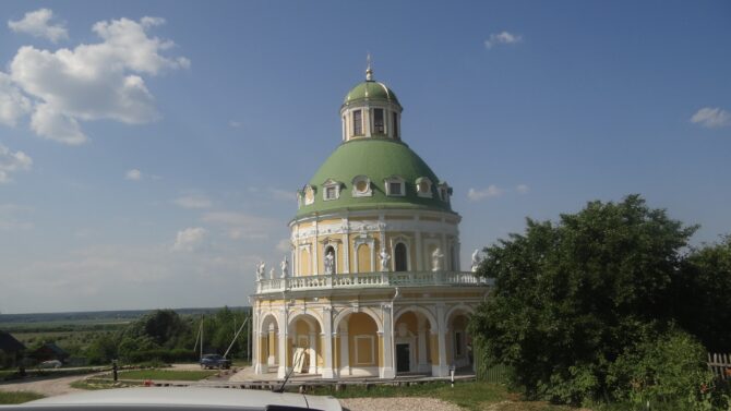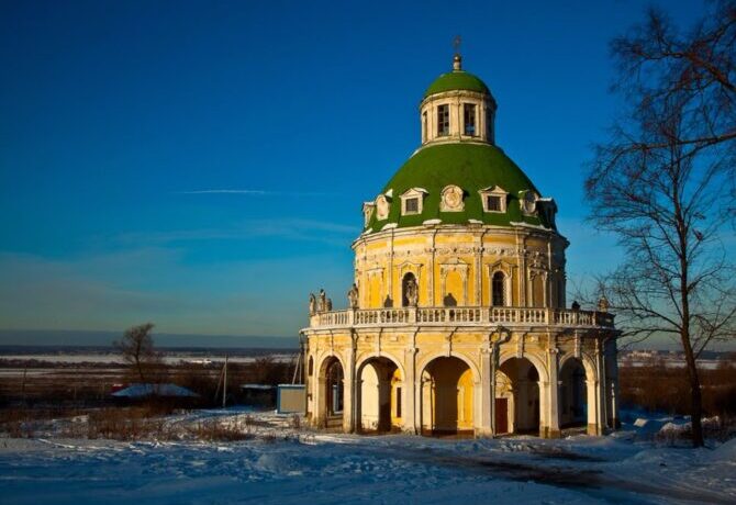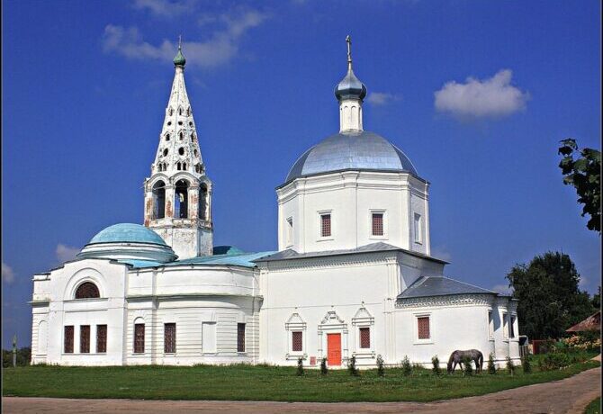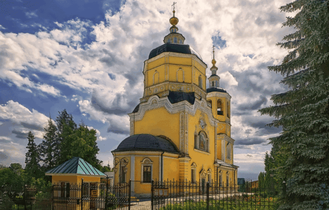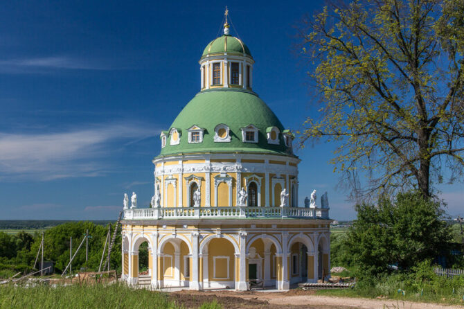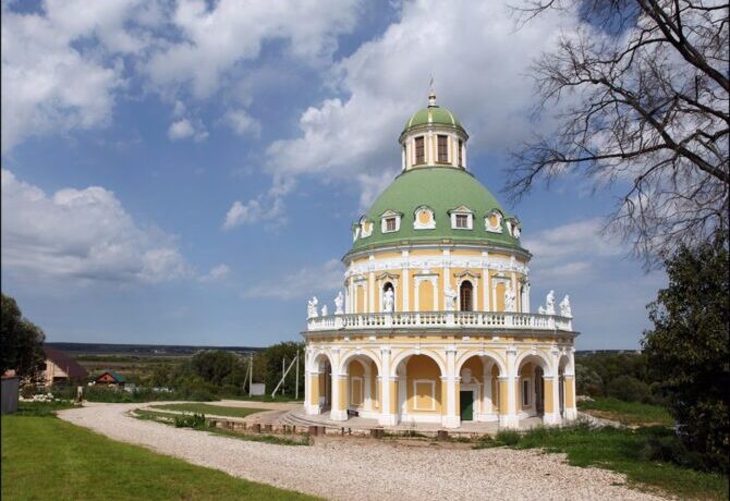 Православный храм в селе Подмоклово построен в стиле Голицынского барокко. Он больше напоминает ротонду в итальянском стиле. Ее построили по заказу русского дипломата Григория Федоровича Долгорукого в 1714 году. Это очаровательное строение выполняло роль православного прихода вплоть до 1937 года. Затем церковь закрыли и передали под нужды местного колхоза. В здании было организовано зернохранилище. В 80-е годы храм подвергся нападению вандалов, несколько статуй были разрушены. Тогда они были восстановлены силами Всероссийского художественного научно-реставрационного центра имени И. Э. Грабаря. С 1988 года начались полноценные восстановительные работы. Объект вошел в список Всемирного наследия ЮНЕСКО. Реставрационные работы ведутся до сих пор и должны закончиться в [y] году. Уже полностью восстановлена настенная картина «Страшный суд». Лицо одного из грешников, находящегося в когтях у дьявола, напоминает облик русского поэта М.Ю. Лермонтова. Оказывается, он был врагом одного из владельцев усадьбы, который и приказал запечатлеть образ на картине страшного суда.