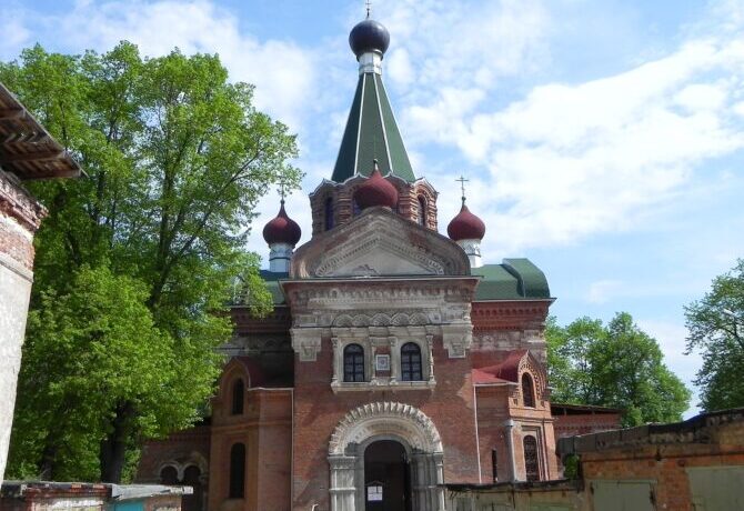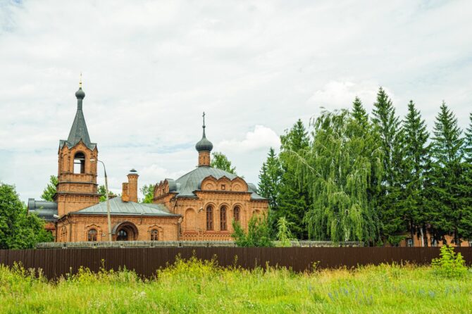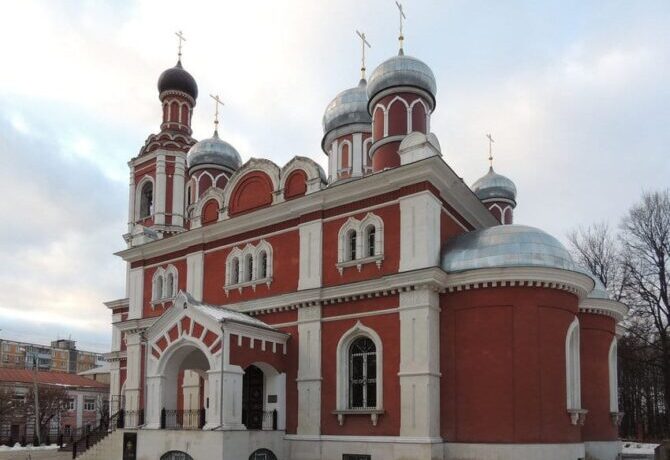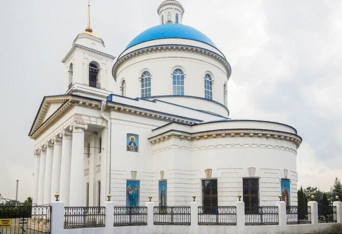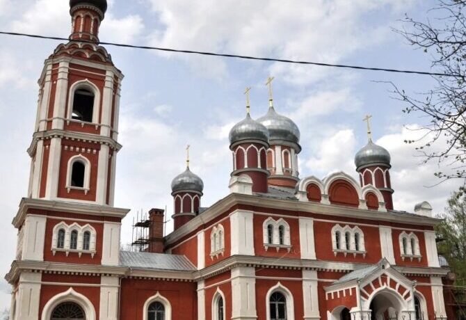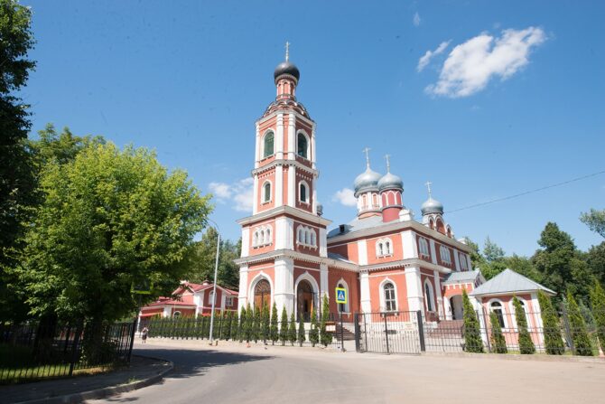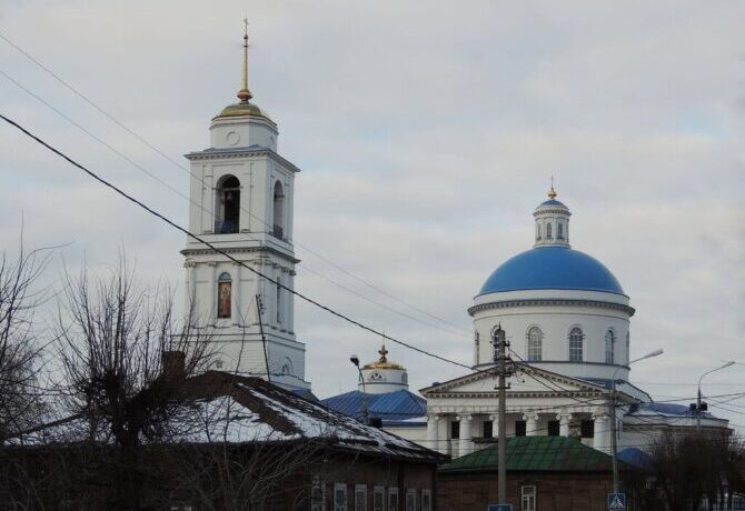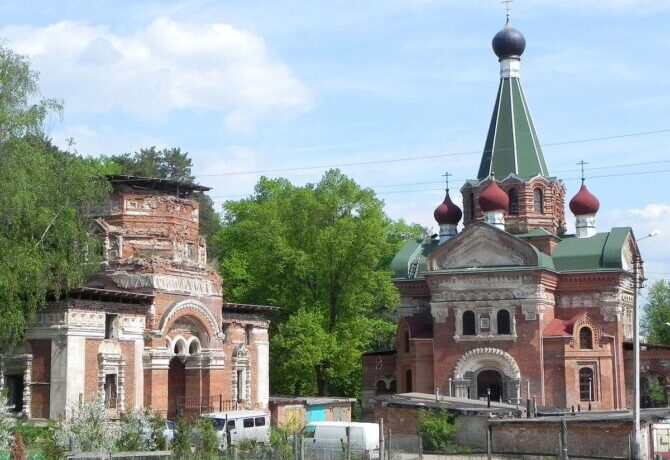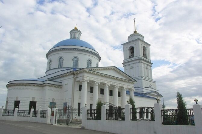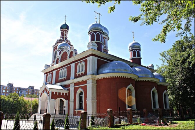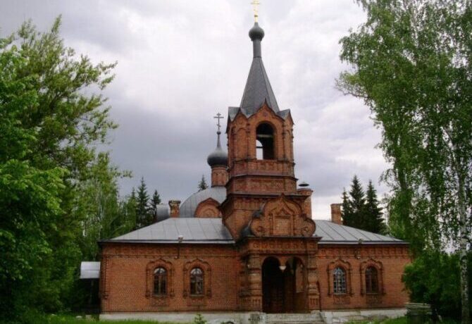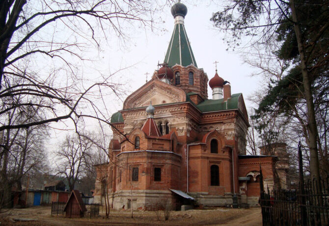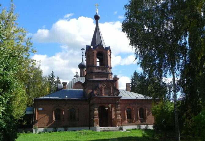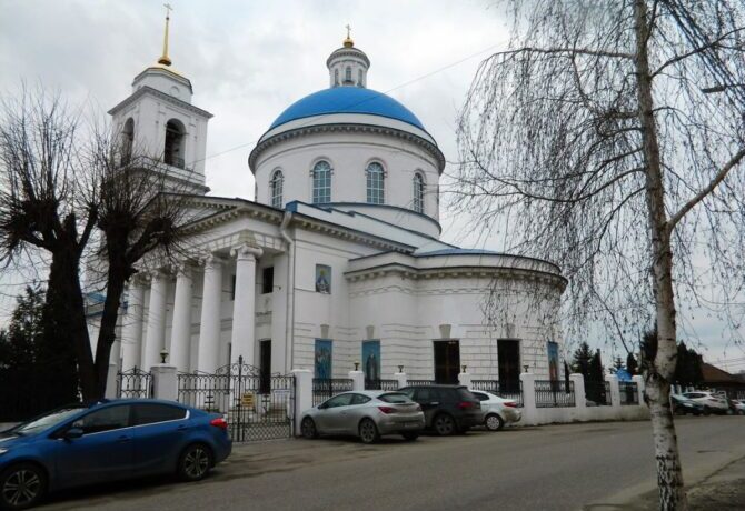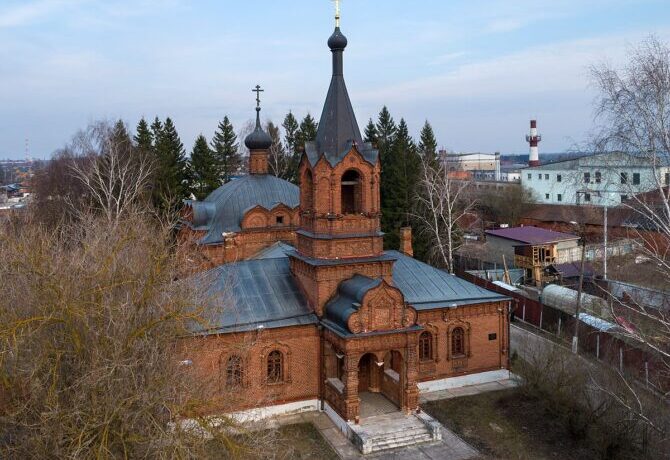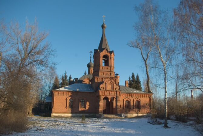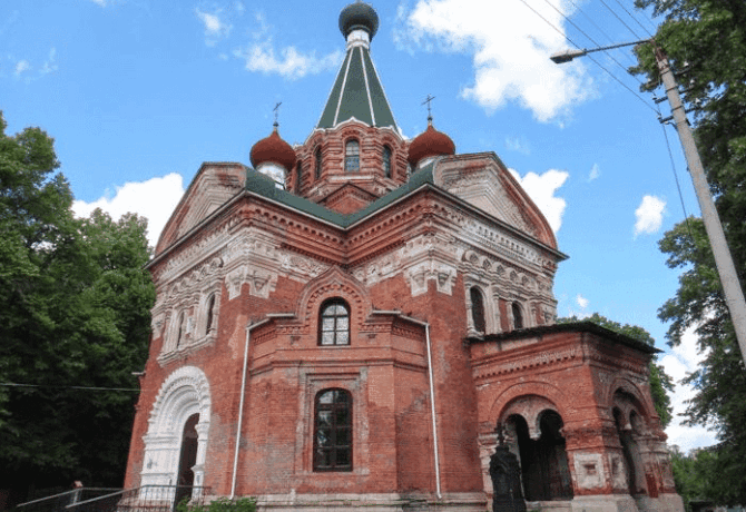 Православная церковь в русско-византийском архитектурном стиле возводилась с 1858 по 1870 годы. Вопрос о ее строительстве подняли жители города. Дело в том, что рядом с городским кладбищем, где усопших хоронили уже в течение 70 лет, не было храма, стояла только небольшая часовня. Его разрешили построить на собранные пожертвования. Первым в дело вложился местный фабрикант Н.М. Коншин. Он пожертвовал 10 тысяч рублей. Часть денег ушла на разработку проекта. Им занялись архитекторы Владислав Грудзин и Казимир Гриневский. Под их руководством было построено здание храма с приделом, а на колокольню денег не хватило. Ее достраивали чуть позже, в 1875 году. Служители церкви выполняли свои обязанности вплоть до 1928 года, пока храм не был закрыт, разграблен, венчания разрушены, а колокольня превращена в антенну. В 1995 году церковь вернули верующим, которые вновь на свои пожертвования начали проводить восстановительные работы. Сегодня над Рабфаковским переулком вновь возвышается красивый храм, в котором регулярно проводятся службы.